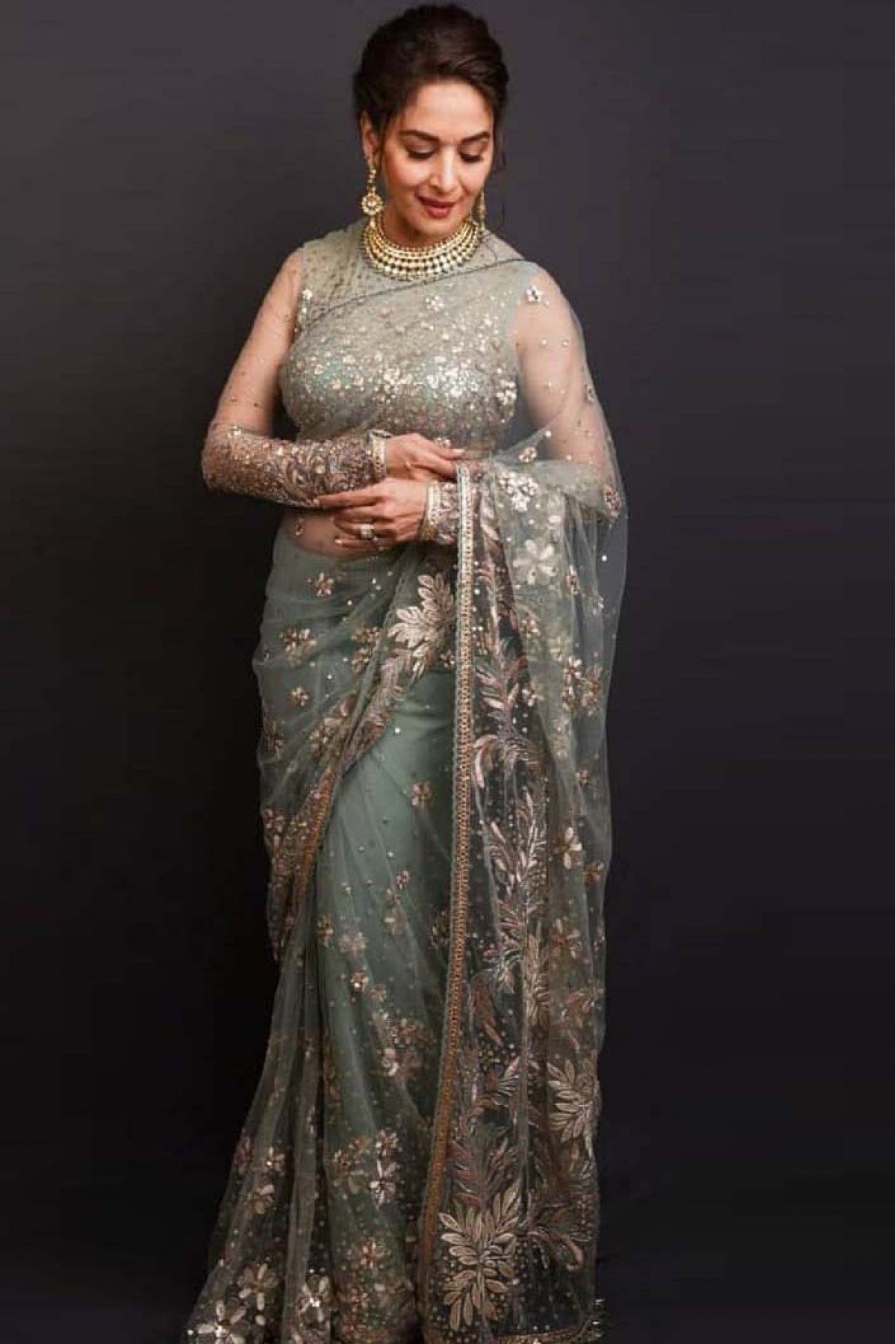 Often women make pallu pleats while wearing a saree, but you should avoid this mistake when you are wearing a net saree. The look of a net sari is revealed only when you leave it open to Pallu. So now next time you wear a net saree, do not make pleats. Then see you will get a different and guardian look.
