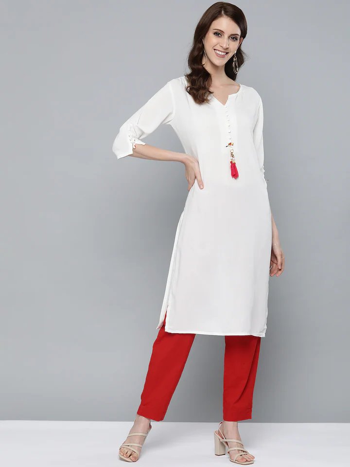 Tassels have become an integral part of Indian wear thanks to the fun element they bring to any outfit. What could be more fun that Holi you ask? A stylish kurta like this one to wear on Holi to ace the look with colours and tassels.